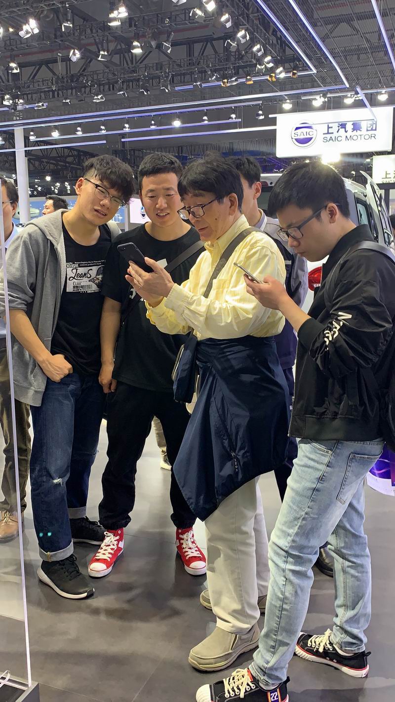 2019年车展邵总给参观者介绍发动机的情况